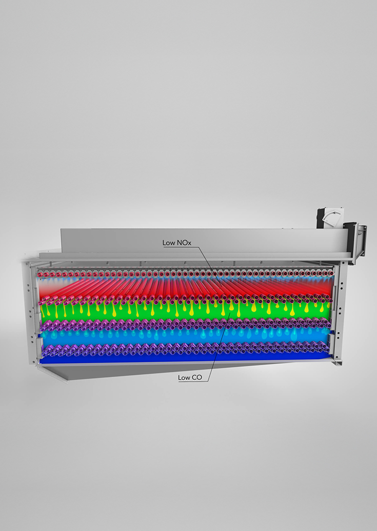 Dankzij de combinatie van een unieke warmtewisselaar-geometrie en een watergekoelde koude vlambrander levert de TRIGON® XXL toonaangevende prestaties met een lage NOx- en CO-uitstoot, die nu al voldoen aan de eisen van NOx-klasse 6.