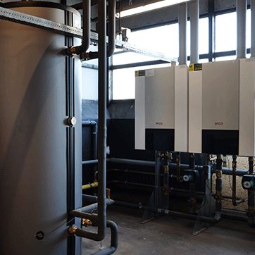 Er is gekozen voor een gescheiden CV- en tapwateropstelling. Dit geeft minimale stilstandsverliezen en een hoger rendement. Het is mogelijk om met een lagere watertemperatuur te verwarmen en de verwarming uit te schakelen buiten het stookseizoen. Het resultaat is een gerealiseerde energiebesparing van 30% op warm tapwater (€9.500)* en een verwachte besparing van 20% op verwarming (€10.400)*. *gasprijs €0,56/m³