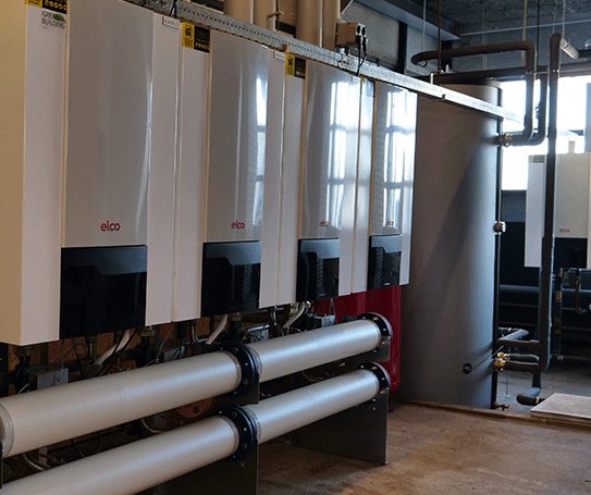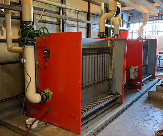 De bestaande vloerstaande ketels met voorzetbrander (1988) kennen een hoog energieverbruik. Met de nieuwe installatie zal dit aanzienlijk teruggebracht moeten worden.