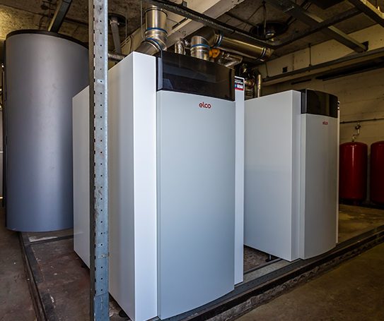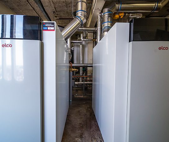 De opstelling – gescheiden CV en tapwater - vormt samen met de voorraadvaten van ieder 1000L één duurzame verwarmingsinstallatie die rekening houdt met de individuele warmtebehoefte van elk appartement.