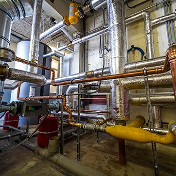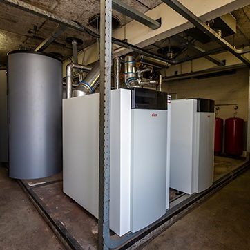 In de oude situatie werd het complex verwarmd door 3 toestellen voor zowel CV als warm water. In de nieuwe situatie is er sprake van 2 CV-toestellen (elk 400 kW)- en 2 warm tapwater (elk 120 kW) toestellen.