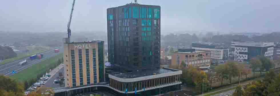 Hotel Venlo is uitgebreid met 107 kamers. Deze uitbreiding wordt verwarmd door een bivalente verwarmingsoplossing, waarbij een warmtepomp samenwerkt met hoogvermogen verwarmingstoestellen van Elco.