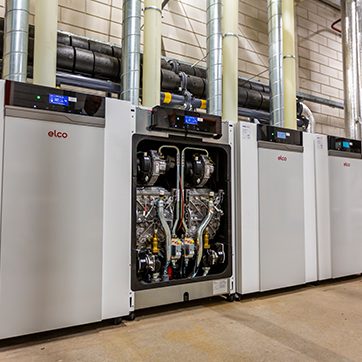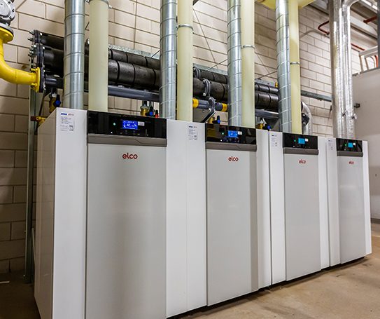 De bestaande verwarmingstoestellen waren verouderd en zijn vervangen door een hoog vermogen cascade installatie.g.