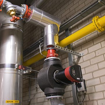 Het centrum wordt verwarmd door 2 TRIGON® XXL EVO met een individueel vermogen van 2000 kW.